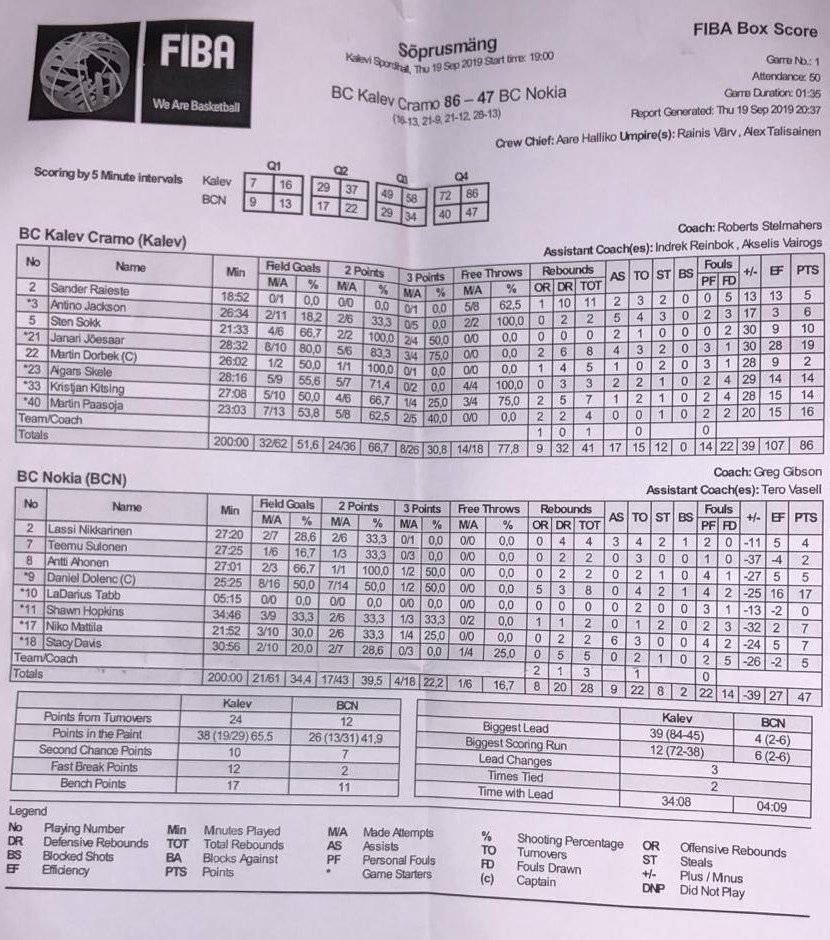 Loukkaantumissumasta kärsivä BC Nokia hävisi viimeisessä harjoitusottelussaan ennen kauden alkua BC Kalev/Cramolle 86-47 (37-22) Tallinnassa. Näädät kykeni pistämään VTB-liigaa pelaavalle Kalev/Cramolle hanttiin noin vartin verran.